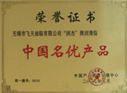 無錫市飛天油脂有限公司"潤杰"牌潤滑脂 榮獲 中國名優(yōu)產(chǎn)品 榮譽證書